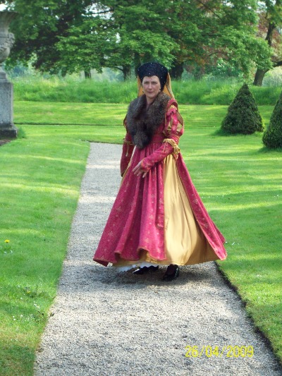 Dass wir als Paar den historischen Tanz praktizieren kommt dem sehr entgegen. Auch das Interesse an Geschichte teilen wir und halten uns diesbezüglich ständig auf dem Laufenden. Meine Arbeiten beschränken sich auf Gewandungen bzw. Garderoben des Hochmittelalters, der Renaissance und der Epoche des Rokoko sowie der Gründerzeit.